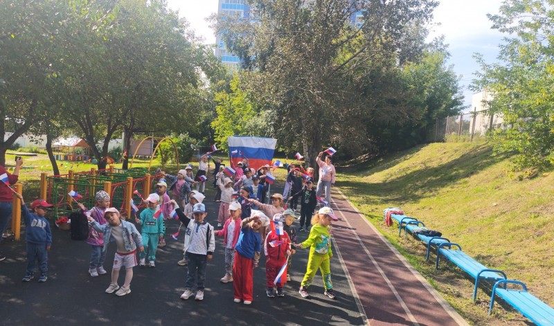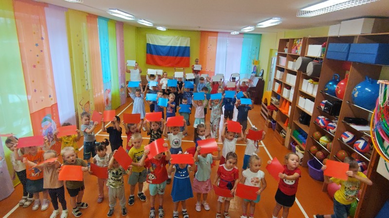 Воспитаники группы принятли участие в праздничных событиях в рамках Всероссийской акции "Цвета Родины", приуроченной кор Дню Государственного флага Российской Федерации: