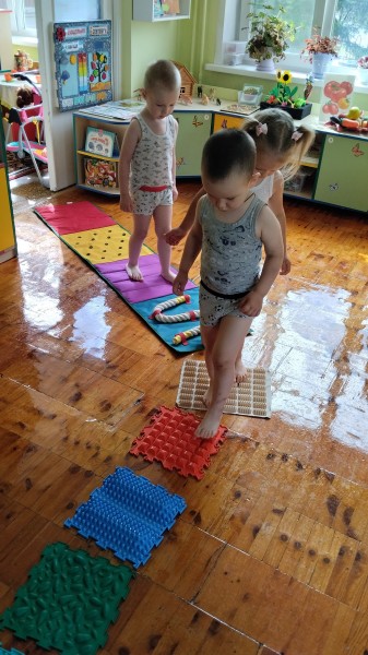 В нашей группе мы сделали всё необходимое для регулярного массажа стоп и закаливания наших воспитанников.