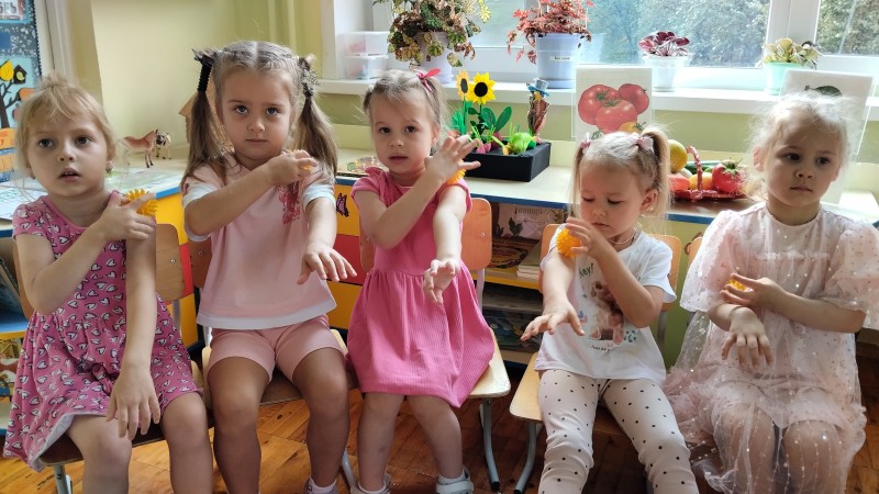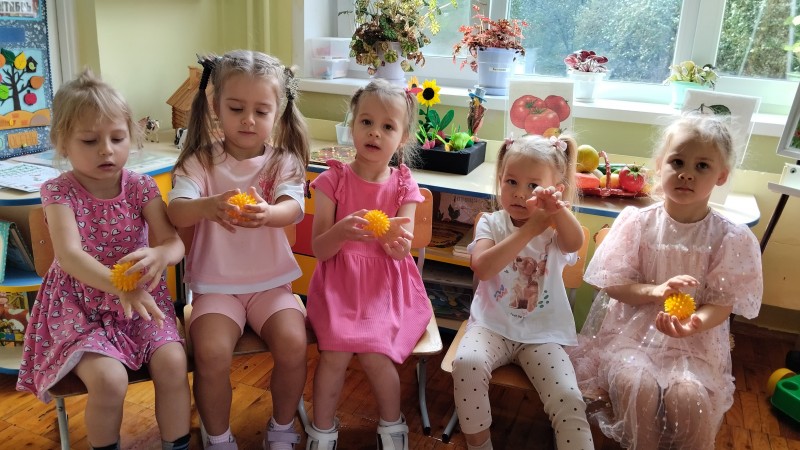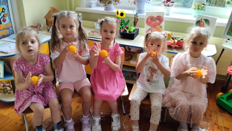 Массажный мячик эффективное средство раслабления мышц и снятия последствий стресса, которое можно использовать ежедневно. Пупырчатая поверхность мяча воздействует на нервные окончания, улучшает приток крови и активизирует кровообращение. При выполнении упражнений с массажным мячиком задействуются глубокие мышечные структуры. Закруглённые массажные шипы на поверхности мячика воздействуют на биологически - активные зоны кожи головы, туловища и конечностей. Эти упражнения можно использовать перед занятиями по продуктивным видам деятельности или как физ. минутки.